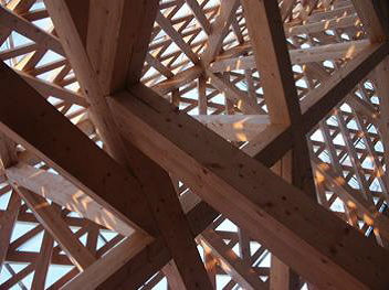 creates ever-changing triangular patterns which move across the sanctuary, choir walls, guest pews and floor. It is God at play; the one who sends forth the light, and it goes, who calls it, and it obeys him, trembling (Bar 3:33). In the space of one 8-verse stanza of Psalm 119, geometric spotlights move across our bodies and choir books, reminding us of the God who is ever constant, yet ever new. We have an hour of silent prayer each morning after Vigils. During the winter, it is very dark at this time. Our blue-black larvikite altar, four and a half tons of black granite and a symbol of Christ the Rock, disappears in the darkness. It is as if one prays through Christ into God’s creation outside, because the glass disappears too. How like Jesus, who is always present, yet often invisible to our eyes. The stars seem closer in the black velvet of the long winter. Yet they too continue to shine in their watches; God calls them and they say, "Here we are!" And they shine with gladness for him who made them (Bar 3:34). One late summer afternoon I was struck by the light sparkling through the glass roof and on the beams. It was like being underwater and looking up through the density to see light dancing on the surface. In a sense we are always under water, and when we die it will be like breaking the surface and coming up into a new reality where we can breathe freely for the first time. The light draws us upwards, towards the freedom which is our true home.