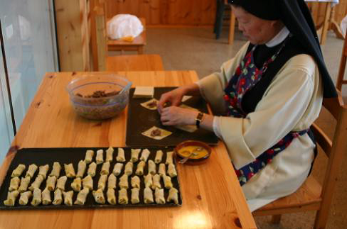 S Sheryl lager minivårruller som er inkludert i hennes klosterkokebok som utgis senere denne våren. Bestillingsinfo kommer i neste Tautringer og på www.tautra.no