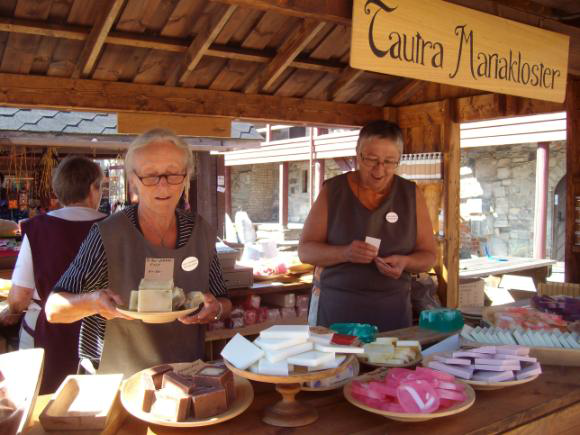 Samme dag åpnet Det historiske markedet i Trondheim, og vår utrettelige støttegruppe betjente igjen Tautra Mariaklosters bod. De solgte våre såper og hudkremer til en sum som tilsvarer en fjerdedel av vår årlige inntekt. Mandag 29.juli feiret vi katolsk messe i Nidarosdomen kl. 14.30 (hittil har det vært kl. 08.00). Dette året ble foredrag for pilegrimer og andre interesserte arrangert i St. Olav menighetslokale. Sr Anne Elizabeth talte om Davidssalmene som pilegrimsanger, og Sr Hanne-Maria om hvordan St. Olav kan inspirere vårt daglige liv som kristne.