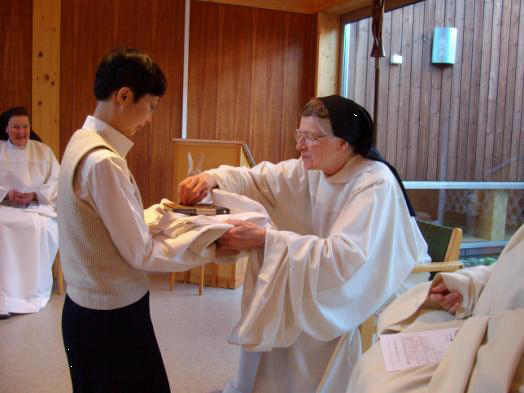 Our novitiate has a new flower: Wei Zhang of Shanghai received the Cistercian habit on May 1 and became Sr Mary Eleanor, OCSO. She chose the day because it was the day of Pope John Paul II’s beatification. At a special Mass at Nidaros Cathedral that evening, with more in attendance than even on the Feast of St Olav, Sr Eleanor proclaimed the first reading from the pulpit. The program for her clothing contained a quotation of Bl.John Paul II: Freedom consists not in doing what we like, but in having the right to do what we ought.