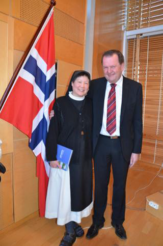 Når en blir trett av å tynges av denne verdens affærer, husk at det finnes en ting på jorden som er et kloster, hvor den menneskelige ånd får tillatelse, til og med blir utfordret, til å hige etter utenomjordiske mål, til å sveve mot himmelens rike. Når en trenger et moralsk kompass eller et fyrtårn for å navigere livets vridde sti, se til et klosters veiledning og lys. Når en har behov for et strålende smil eller en gledeshilsens sødme, et forstående øre eller den trøstende berøring av en hånd, født av guddomelig kjærlighet og dyp indre fred, se til et klosters medlemmer. Og når dere, heldige nordmenn, trenger et tegn på Guds gåtefulle kjærlighet til dere, se ikke lenger enn til Tautra Mariakloster. 6